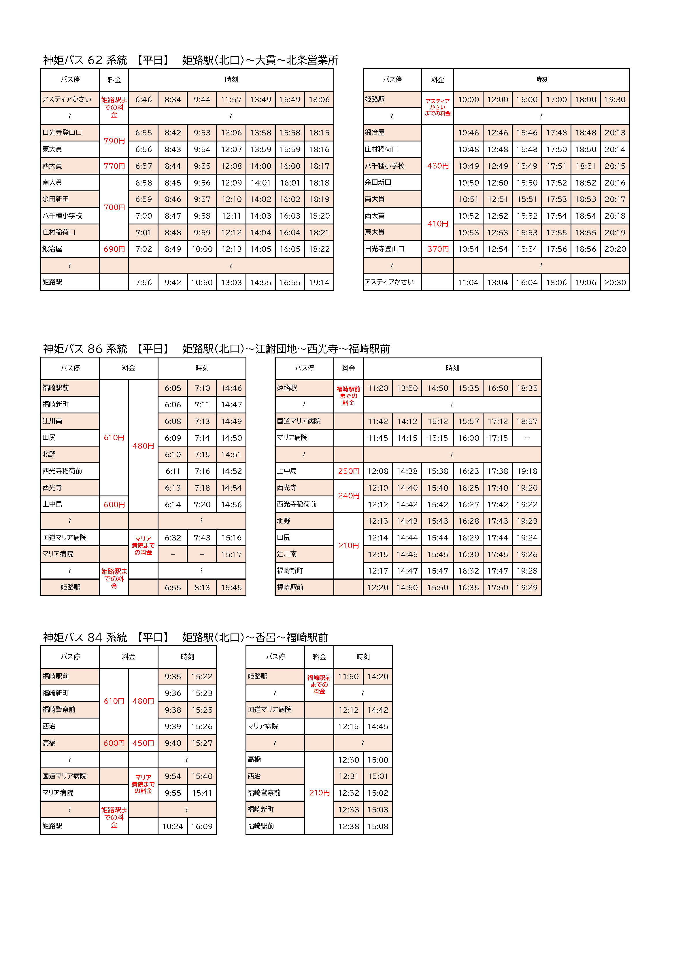 ※土曜日、日・祝日の時刻表をご覧になりたい方は神姫バスHPをご覧ください